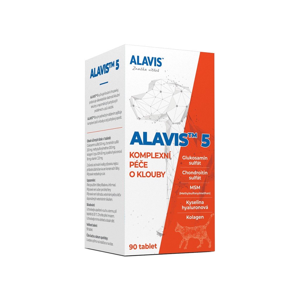 ALAVIS 5 je komplexní kloubní výživa pro psy a kočky, která obsahuje všechny klíčové látky přirozeně se vyskytující v kloubní chrupavce, pojivových tkáních a synoviální tekutině.