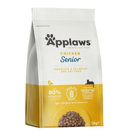 Superprémiové granule Applaws Senior Cat Chicken s vysokým obsahem masa (80 % bílkovin z kuřete), ideální pro starší a kastrované kočky. Bez obilovin, s prebiotiky, brusinkami a...