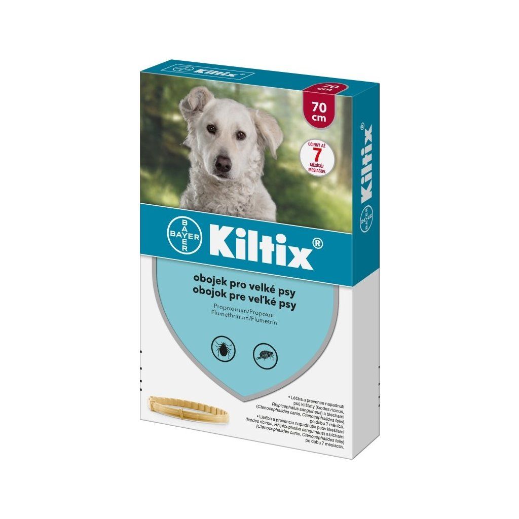BAYER KILTIX antiparazitní obojek 70 cm je veterinární přípravek určený k dlouhodobé ochraně psů před blechami a klíšťaty. Obojek je vhodný pro velké psy s obvodem krku do 70 cm a poskytuje spolehlivou ochranu až po dobu 7 měsíců.