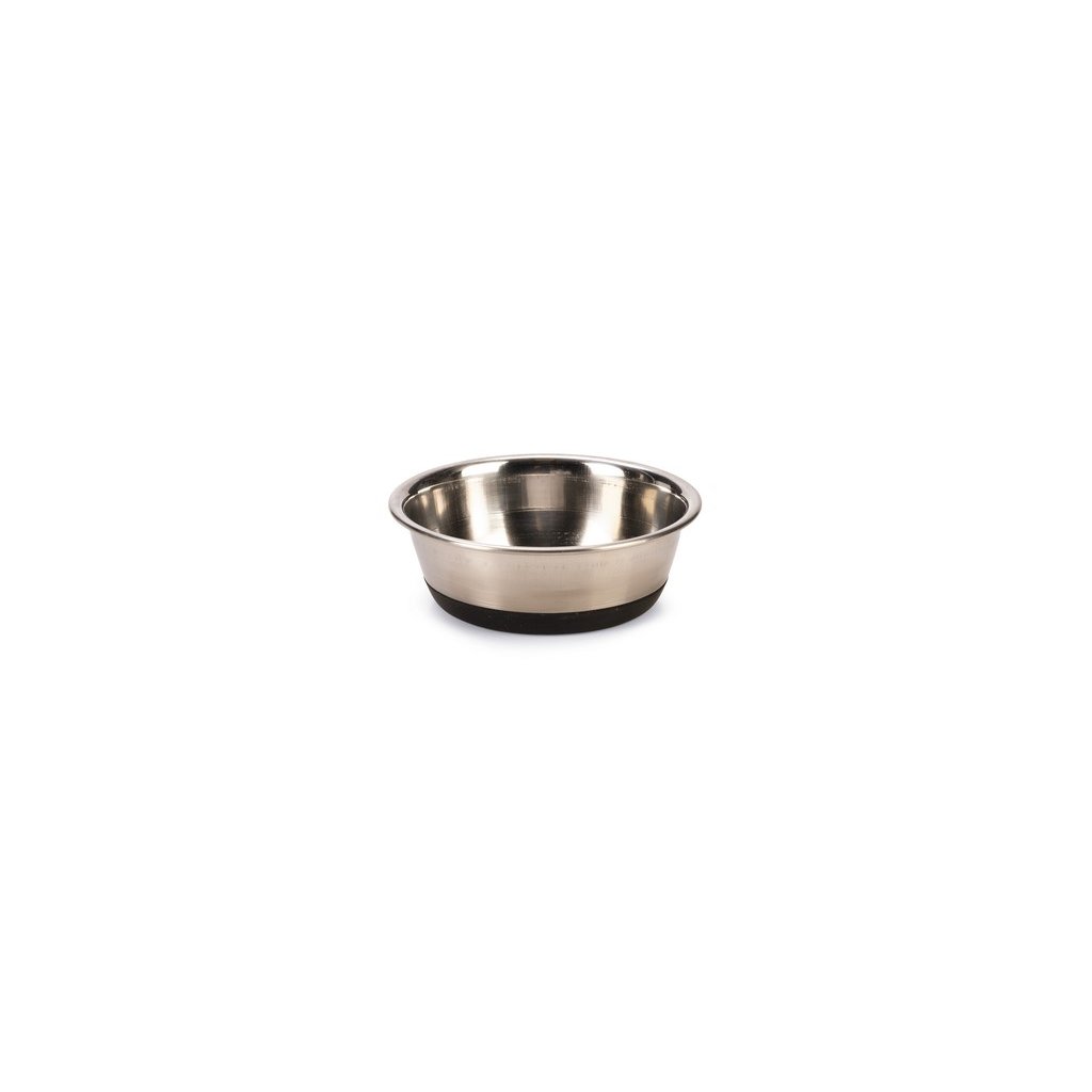 Tato miska je vyrobena z kvalitní nerezové oceli a navržena tak, aby byla maximálně stabilní a bezpečná. Široké gumové hrany pevně připevněné k oceli zajišťují, že miska během krmení neklouže a zůstane na svém místě. Díky promyšlenému tvaru je miska ještě odolnější proti převrácení.