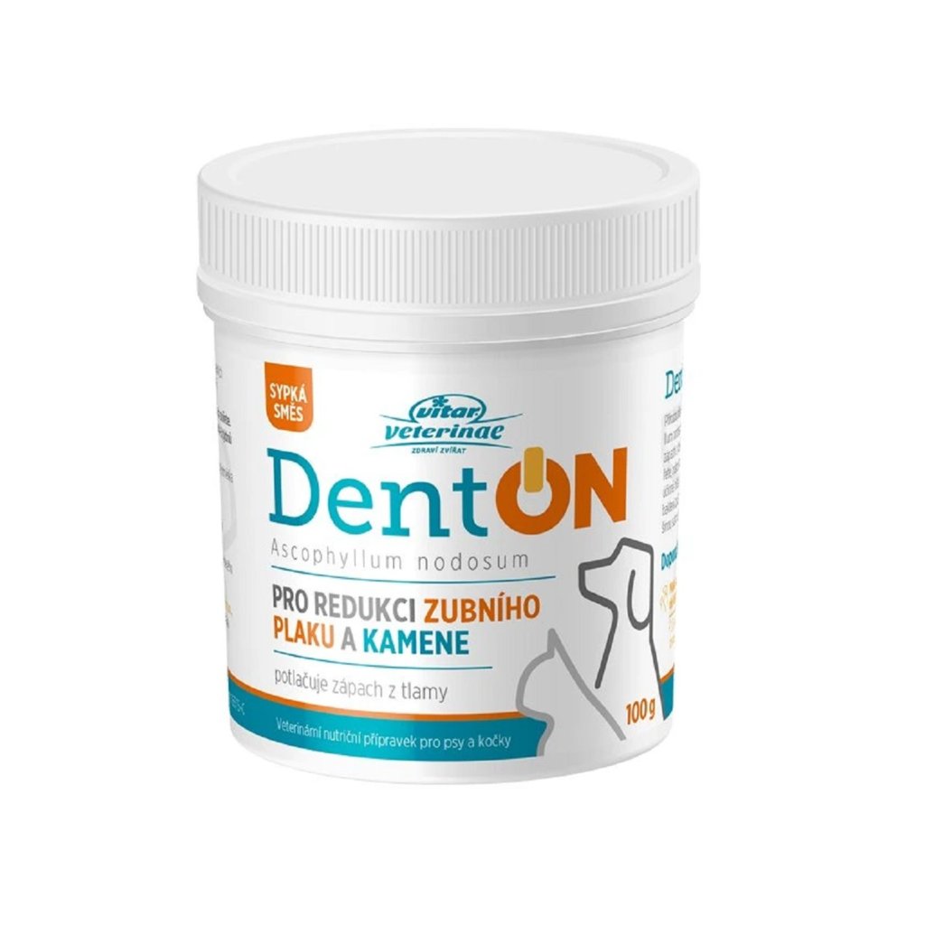 Péče o zuby vašeho mazlíčka nikdy nebyla jednodušší! VITAR DentON je 100% přírodní doplněk stravy obsahující mořskou řasu Ascophyllum nodosum, která působí přímo v trávicím traktu a prostřednictvím slin pomáhá čistit zuby a chránit dásně.