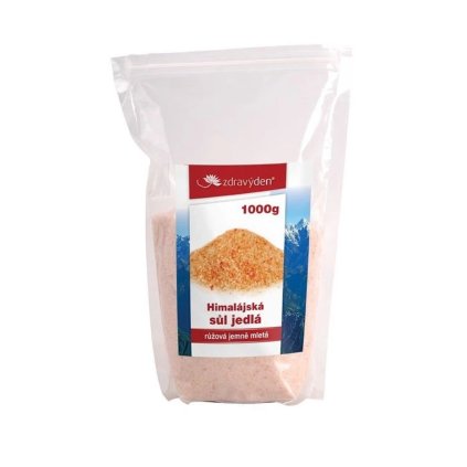 Přírodní růžová himálajská sůl Zdravý den 1000 g – jemně mletá, nerafinovaná, ručně těžená a sušená na slunci. Bohatá na minerály, bez chemie a přidaného jódu.
